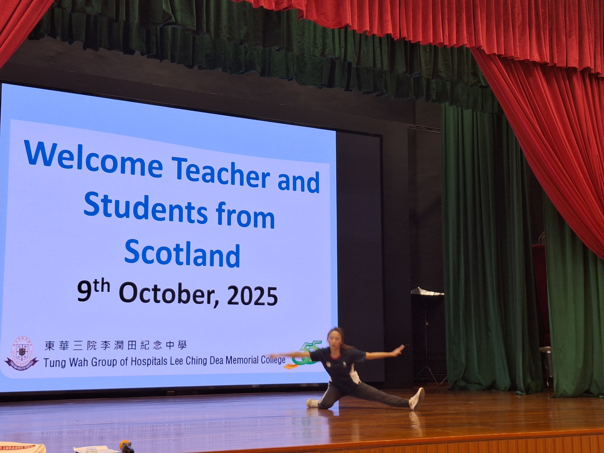 我們非常高興地接待了位於愛丁堡的蘇格蘭姊妹學校 (Trinity Academy) 的來訪。蘇格蘭的師生們積極旁聽並參與了我們的課程。兩校校長和老師之間也進行了一些專業交流。我們共進港式午餐,學生們愉快地交談著。下午,他們體驗了詠春拳,並樂在其中。