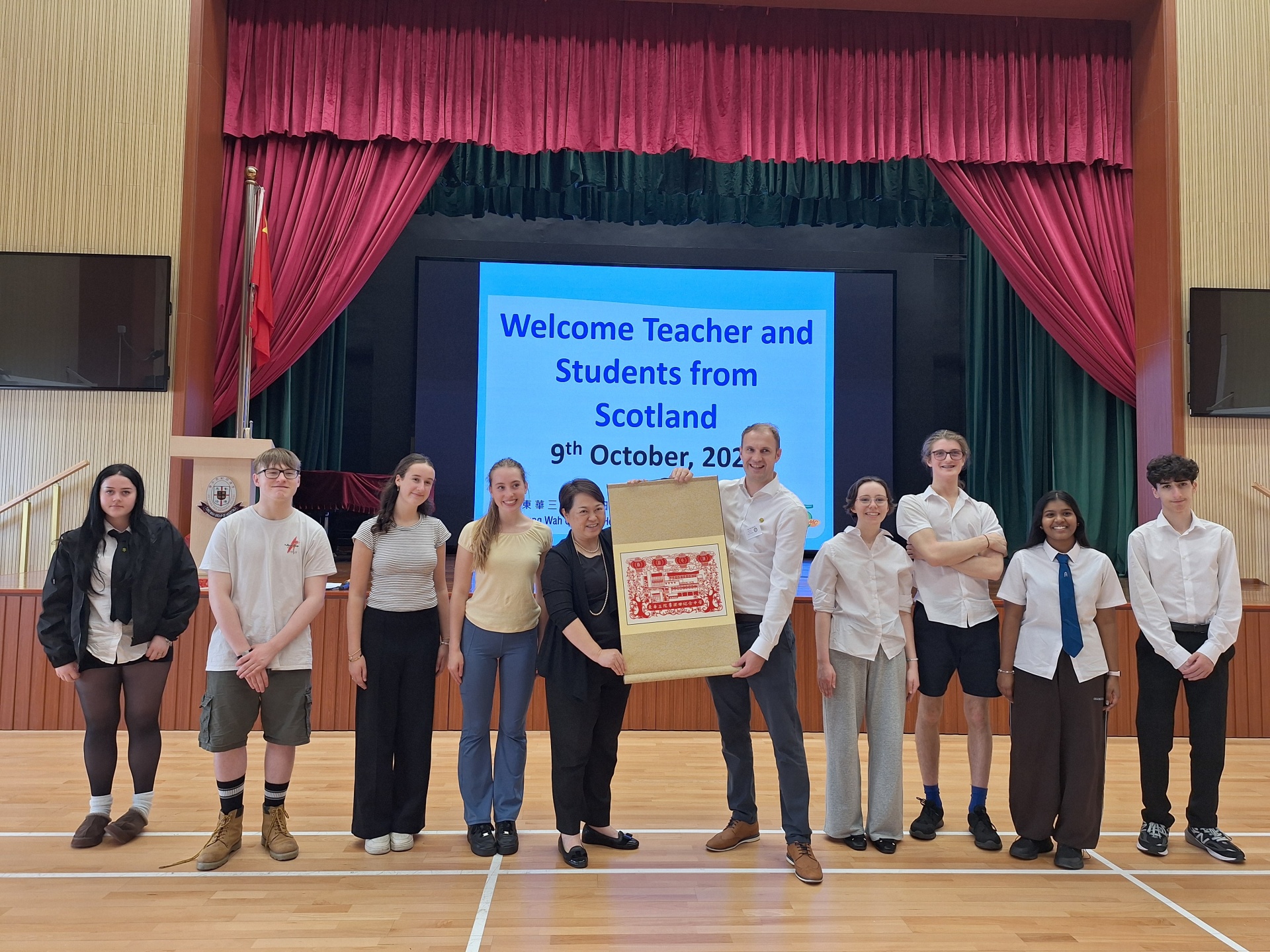 We were very pleased to be visited by our Partner School in Scotland - Trinity Academy - located in Edinburgh. Teachers and students from Scotland observed and participated actively in our lessons. Some professional exchanges were conducted between principals and teachers. We shared a Hong Kong style lunch in which our students chatted with theirs happily. In the afternoon, they had a taste of traditional martial arts, Wing Chun, which they enjoyed wonderfully.