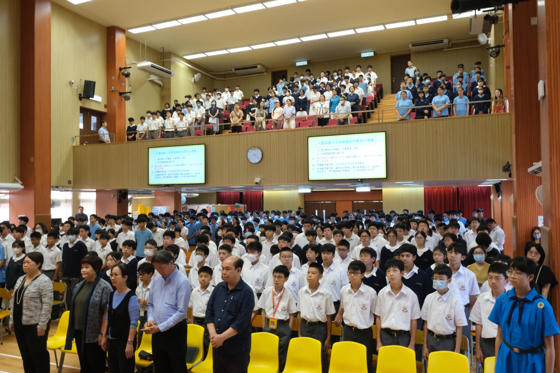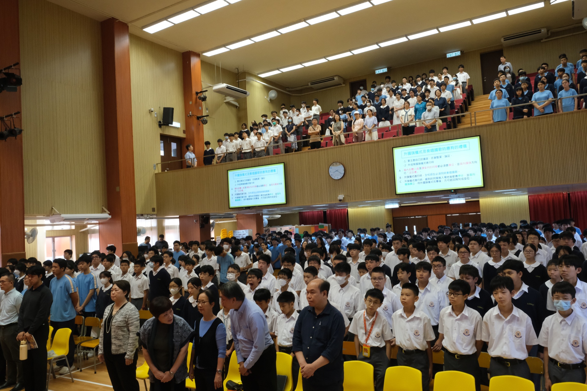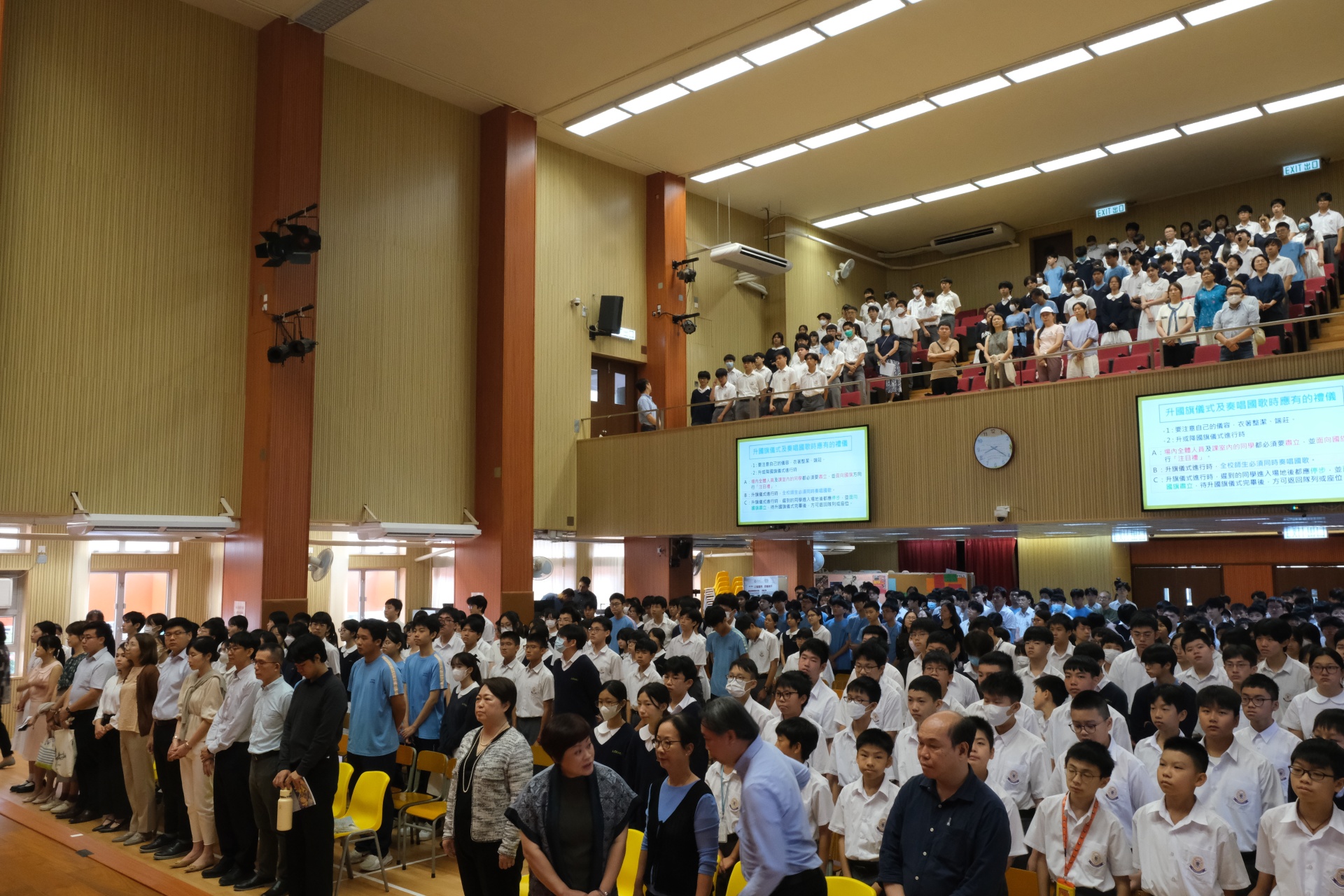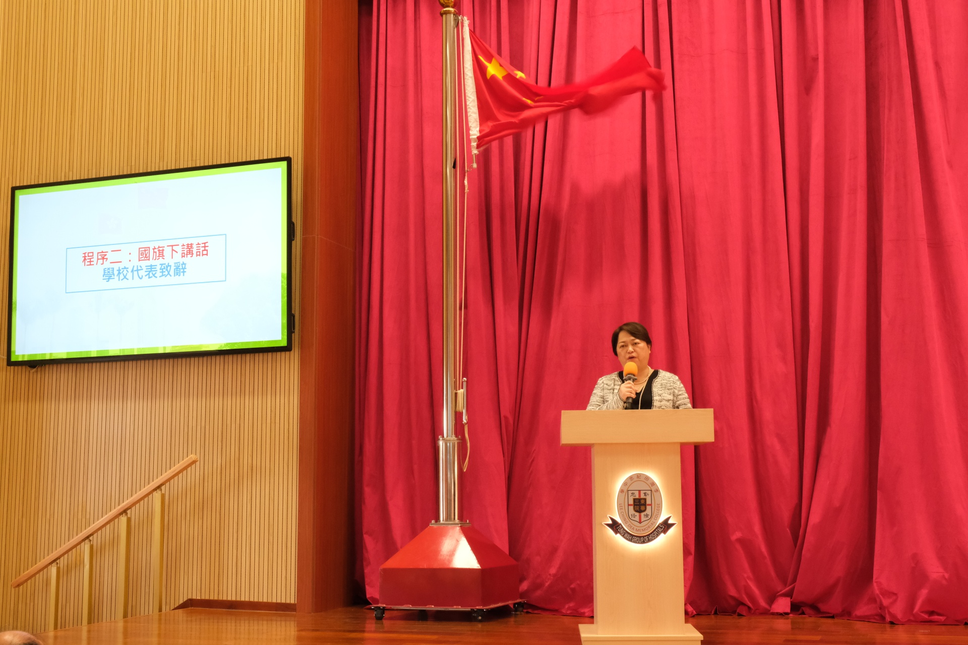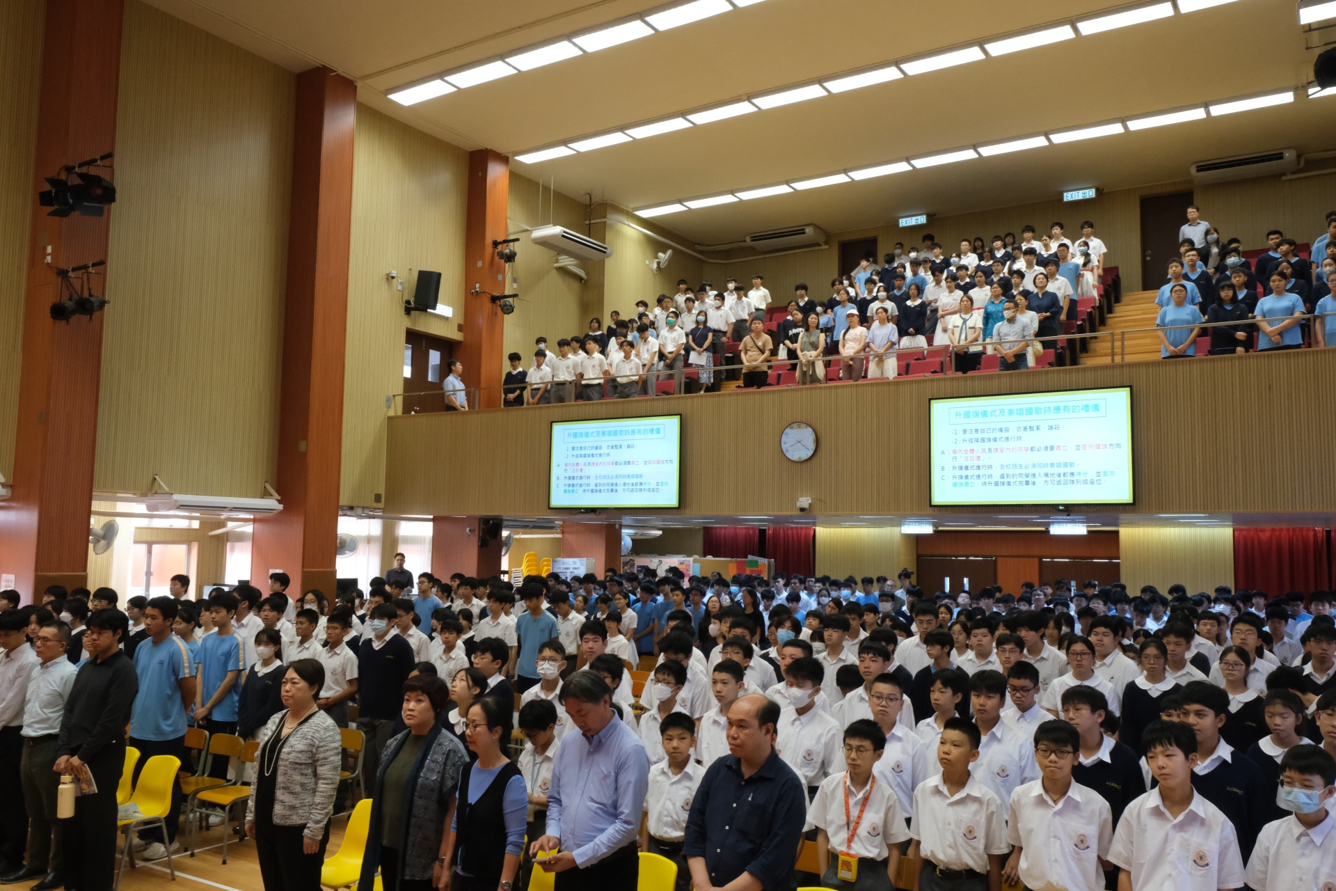 本校於 2025 年 9 月 29 日的周會時段舉行了「慶祝國慶76周年學校慶典活動」,活動圓滿成功。內容包括隆重的國慶 76 周年升國旗儀式、奏唱國歌、學校代表致辭、學生代表致辭,以及播放有關 93 閱兵的影片。整個活動讓全校師生共同感受國慶的喜悅與莊嚴,增強了對國家的認同感與自豪感,充分展現了活動的教育意義與成功之處。