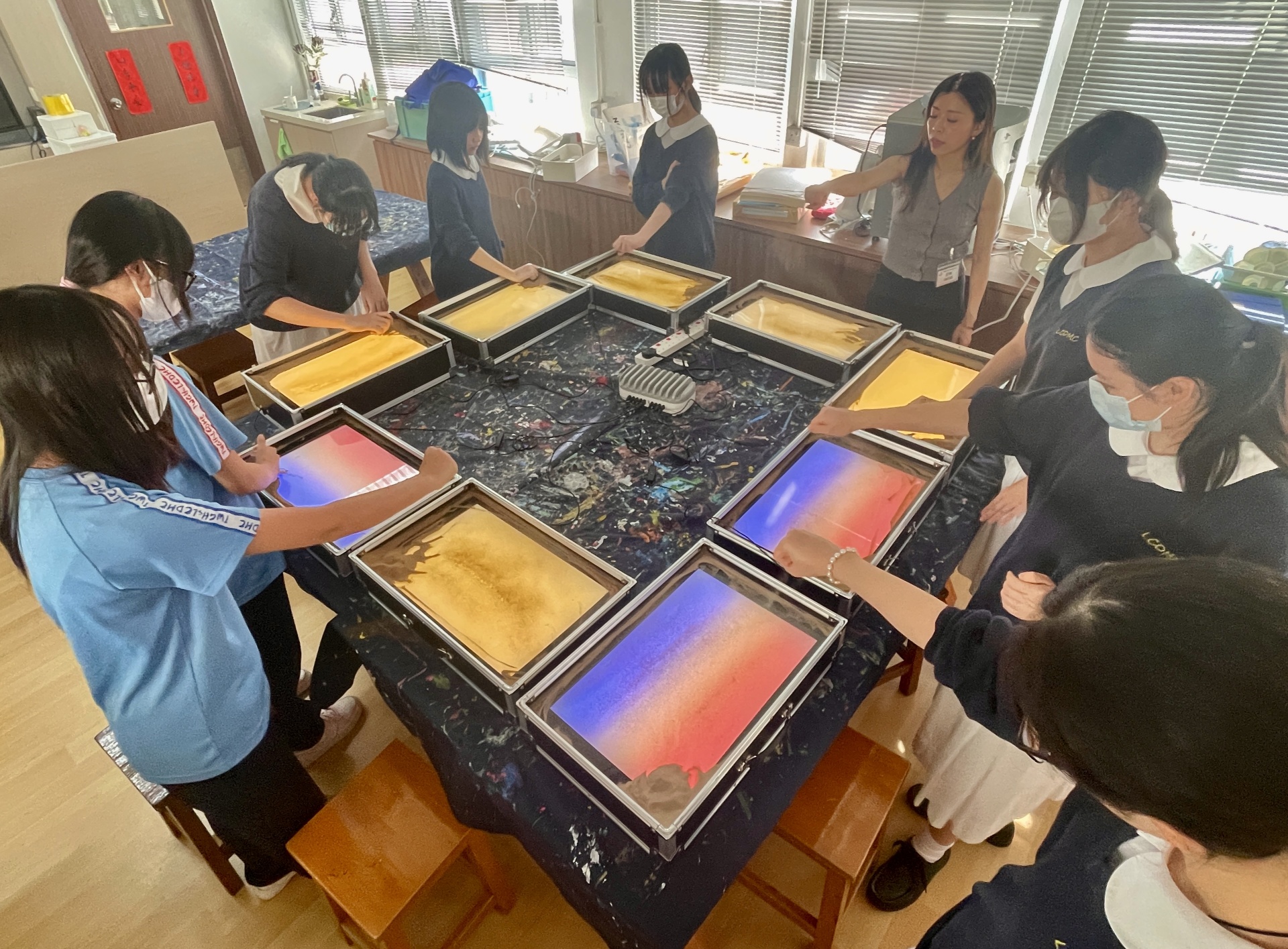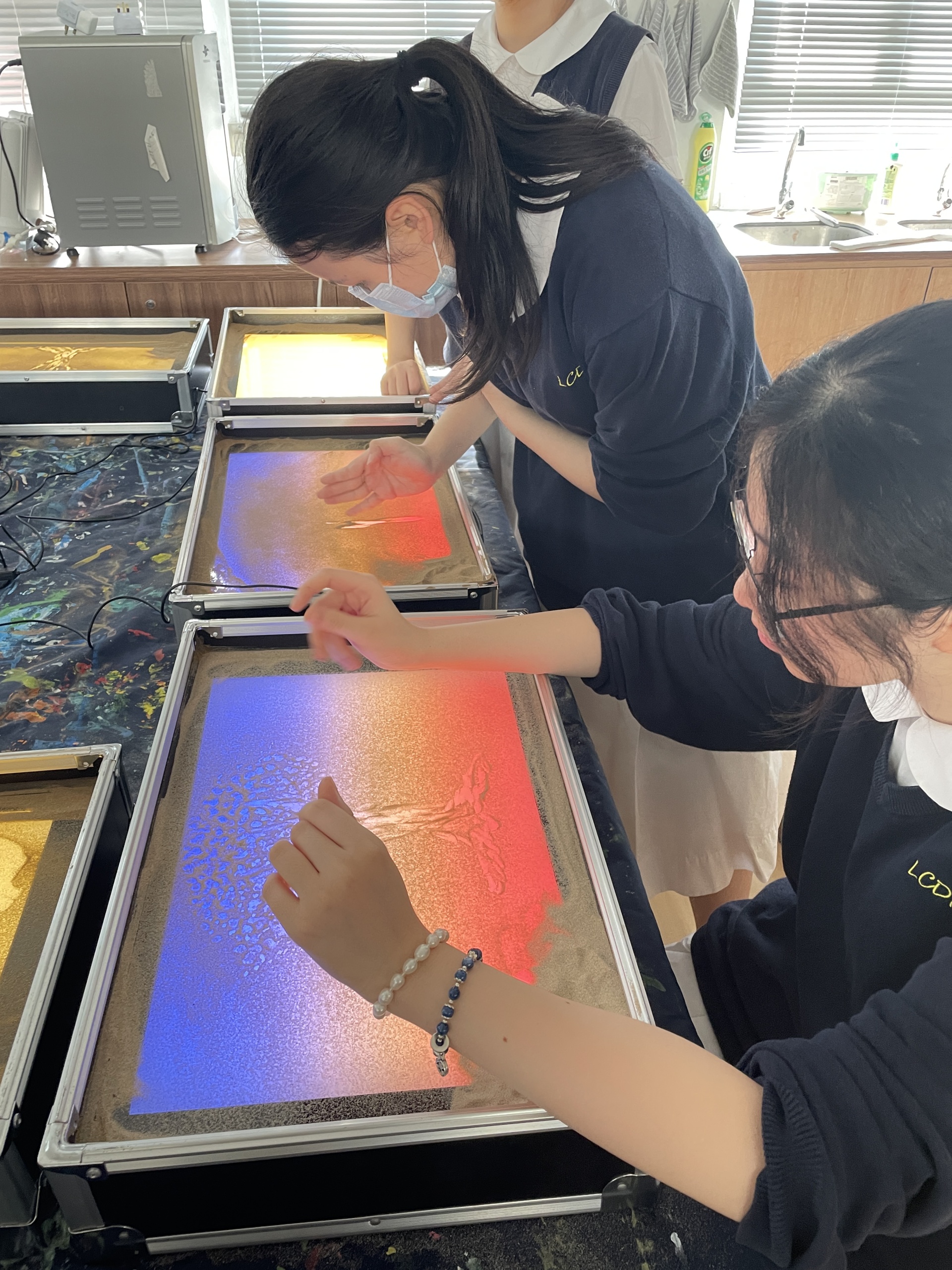 為55周年校慶晚會表演準備,讓 9 位中二及中五的學生及 1 位老師掌握以沙畫表演技巧,同時接觸獨特的藝術媒介,作出別出心裁的表演項目。